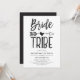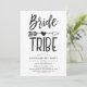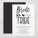 A Bachelorette party invitation tailored specifically to your bride tribe. It features a classic black and white themed look with the words bride tribe written in handwritten style font. Between both words is a tribal arrow piercing a heart.