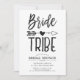 A bridal brunch invitation tailored to your trusted bride tribe. It features a classic black and white themed look with the words bride tribe written in handwritten style font. Between both words is a tribal arrow piercing a heart.