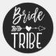 A customisable black sticker tailored to your trusted bride tribe. It features a classic black and white themed look with the words bride tribe written in handwritten style font. Between both words is a tribal arrow piercing a heart.