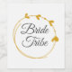 Wine bottle labels that highlight your wedding bridal party colour scheme and feature a golden yellow colour, simple heart wreath along with the words, "Bride Tribe" in dark grey, stylised script. Perfect for your bridesmaids when throwing a bachelorette party!