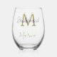 Bride tribe monogram bridal shower simple golden p stemless wine glass