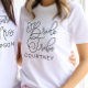 Rally the squad in matching "Bride Tribe" tees featuring elegant script calligraphy and a customisable name for each member of the bridal party. The flowing hand-lettered design coordinates beautifully with the matching "Bride to Be" and "Future Mrs." tees in the same style. Edit the name to personalise for every bridesmaid.