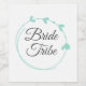 Wine bottle labels that highlight your wedding bridal party colour scheme and feature a seafoam colour, simple heart wreath along with the words, "Bride Tribe" in dark grey, stylised script. Perfect for your bridesmaids when throwing a bachelorette party!