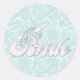 Bride with veil stickers ,in a pale pink lettering with a bride's head with veil on a pale blue silk background...take any design and create your own stickers