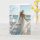 This wedding card is shown with well wishes for the bride showing a photo print of a bride and a sheer veil with butterflies on it.