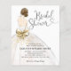 Modern Bride Brunette Brown Hair White Gold Glitter Wedding Gown Dress Elegant Script Calligraphy Heart Bridal Shower Invitation