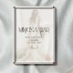 Stylish elegant design featuring watercolor bride in her wedding dress, modern typography and springflowers on marible in back.The text can easily be personalised for a unique one of a kind design for your special day.