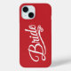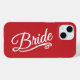 This cute iPhone case is accented with Bride, written in fancy white type on a red background making it the perfect gift for the new bride over the holidays.