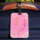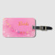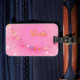 Pink and colourful stars and sparkle effect on a wedding luggage tag. Reads: Bride