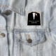 Graphic brides cousin in black tuxedo suit with a coral pink stylised buttonhole rose, pin button badge. Reads brides cousin David, Or personalise with your own attendants title and name. Great for buck / stag parties, wedding rehearsals to help all your guests identify who is who or to add to wedding favour bags.