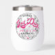 Personalise this custom bride & guest names trendy 70's retro Bride's Last Disco theme bachelorette party / weekend quality thermal wine / coffee tumbler party favour gift featuring a silver Disco ball and groovy hot pink script fonts and retro starburst design accents on front, and custom bridesmaid or party guest name on the back. Easily enter your wording details and make it your own! Custom design requests and questions are always welcome - click the message button, or email directly at: contact@figandlilyco.com ♥