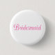 Button Pin casual fun fashion statement accessory printed with White Colour background and Bridesmaid in Hot Pink Colour text typography lettering design by TheFabricSeal print on demand shop at Zazzle.com #ZazzleMade https://www.zazzle.com/store/thefabricseal TheFabricSeal©️Original.