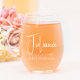 Bridesmaid Chic White Script Wedding Stemless Wine Glass