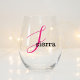 This monogram stemless wine glass makes a lovely wedding keepsake gift for your wedding party or bridesmaids. Stylish, minimalist design in trendy typography. The name template is set up ready for you to customise with recipient's initial and name. Order this elegant keepsake for your big day now!