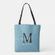 Bridesmaid Gift White Black Monogram Dusty Blue Tote Bag
