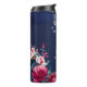 Bridesmaid gifts custom name navy blue pink roses thermal tumbler