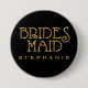 Identify the members of your wedding party with these personalised faux-glitter on black name tag buttons. ‘Bridesmaid’ is spelled out in gold glitter-look typography. Below, customise it with a name (or text of your choice), using the easy to use provided template. Please check my store for button designs available for all members of your wedding party!