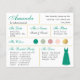 Bridesmaid Information Card Emerald Green Gold