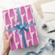 Gift wrap design features an original marker illustration of a pink wedding party bridesmaid gown.