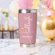 Bridesmaid | Minimal Script Name Gold Heart Pink Insulated Tumbler