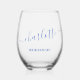 Bridesmaid Modern Blue Script Name Bridal Shower Stemless Wine Glass