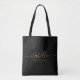 This Bridesmaid accessory bag features a handwritten gold script typography with swashes on a black background. Present your bridesmaids with a tote bag for small items traditionally presented at the rehearsal dinner, for use in the early morning before the wedding.