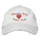 Easily personalise this romantic red love heart design graphic with your custom text to make a great cap for your bachelorette party crew or hen party bash, easily customise the bridesmaid text for your members of your wedding entourage, change the colour of the text and valentine heart embroidery to coordinate with your hat colour.