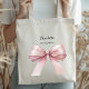 Bridesmaid pink bow elegant name tote bag