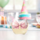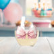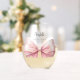 Decorated with a girly pink bow. Personalise and add your bridesmaid's name. Black handwritten style script.