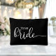 "This Bridesmaid / Team Bride accessory and makeup bag showcases a sleek white script font with elegant swashes on a clean black background. It's the perfect gift for your bridesmaid, designed to hold makeup and small essentials. Traditionally presented at the rehearsal dinner, this toiletry bag will come in handy during those early hours before the wedding."