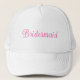Custom Trucker Style Baseball Cap Hat In White Colour printed with Bridesmaid in Pink text typography lettering and digital graphic design by TheFabricSeal print on demand shop at Zazzle.com #ZazzleMade https://www.zazzle.com/store/thefabricseal TheFabricSeal©️Original.