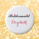 Beautiful, elegant, fun, cool, custom, personalised, stylish round pinback button for the bridesmaid for bridal shower, bachelorette party, wedding party.