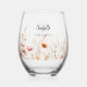 Bridesmaid wildflowers beige pink stemless wine glass