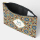 Teal Blue and brown colourful vintage Mexican talavera azulejo bridesmaids gifts personalised name monogrammed cosmetic bag gifts for her
