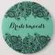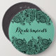 Black paisley floral lace over mint green paisley damasks background, customisable Bridesmaids button.