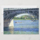 This design features a painting by the French Impressionist artist Gustave Caillebotte (1848–1894). It depicts a metal arch bridge crossing the River Seine. It is the Argenteuil Bridge. There are some boats sailing on the river. A man can also be seen walking across the bridge. There are some houses on the land across the water. The original art was painted in 1885.