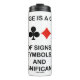 Showcase your wry bridge side with this thermal tumbler featuring the four card suits along with the bridge truism saying: "Bridge Is A Game Of Signs, Symbols, And Significance". Make others do a double-take on what the game of bridge is all about the next time you take a sip from this thermal tumbler!