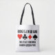 Wry bridge / duplicate bridge humour comes alive on this tote bag featuring the four card suits along with the saying "Bridge Is A Social Game That Attracts A Substantial Number Of Antisocial People". Make others do a double-take at the bridge table with a dose of bridge attitude with this tongue-in-cheek bridge sarcasm tote bag.