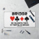 Showcase your tongue-in-cheek, yet oh so serious, bridge attitude with this bridge saying desk mat featuring the four card suits with the following words: "Bridge My Favourite Form Of Mental Exercise". Make others do a double-take with a dose of bridge / duplicate bridge humour at your next bridge game with this desk mat!