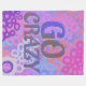 This sherpa blanket is bursting with energy and color. The hand drawn design features overlapping circles in pink, purple, blue, and peach with the bold phrase “GO CRAZY” splashed across the center. A custom initial sits in the bottom corner, making it personal and unique. Soft, cozy, and full of personality, this blanket is perfect for teens who love vibrant style and a playful message. Great for lounging, sleepovers, or adding a pop of fun to any bedroom.