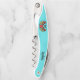 This corkscrew is pretty aqua blue with a bright abstract black scarab beetle with blue, red and yellow accents. Customise your name or text with the templates on the front and back.