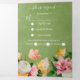Bright and Bold floral botanical arrangement with colours of yellow, peach, pinks, and white against a Apple Green mottled background Wedding all in one Tri-fold invitations that come with response cards RSVP, Details and info and a photo of the couple. Wonderful for a spring, summer, or garden wedding!