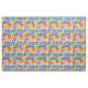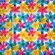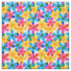 Add a bright touch to your next sewing project with this patterned fabric. It has a retro style with overlapping hippie daisy flowers in bright yellow, blue and magenta pink. The hand drawn graphics are designed to imitate classic risograph style printing.