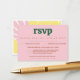 Bright and bold Retro rsvp. Orange pink and yellow rsvp card. This contemporary template card for you to personalise for the perfect event. Modern enclosure card with vintage retro font.