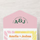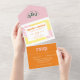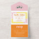 Bright and bold Retro Wedding invitation. Orange pink and yellow wedding invitation. This contemporary invitation template for you to personalise for the perfect event. Modern invitation with vintage retro font.
