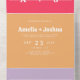 Bright and bold Retro Wedding invitation. Orange pink and purple wedding invitation. This contemporary invitation template for you to personalise for the perfect event. Modern invitation with vintage retro font.