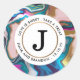 Bright and Colourful Abstract Marbling Monogram Classic Round Sticker