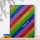 Add a sparkly touch to your home bedroom or nursery decor with this bright and shiny faux glitter rainbow striped custom school notebook. Notebook alternates stripes of red, yellow, green, blue, and purple glitter. Add your name and a heart for a personal touch (or remove, per your preference). This notebook is great for any kid or adult who loves fun colorful things!