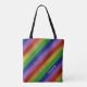 Bright and Sparkly Rainbow Faux Glitter Striped Tote Bag