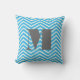 Bright Aqua Ivory and Grey Modern Monogram Zig Zag Pattern Throw Pillow